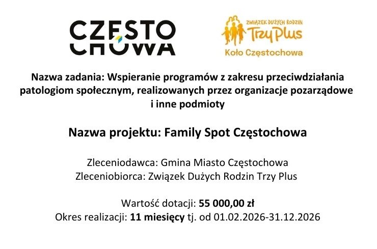 W wyniku rozstrzygnięcia otwartego konkursu ofert z zakresu zdrowia publicznego na 2026 rok nasza organizacja będzie realizować aż 3 projekty. To dla nas ogromna motywacja i kolejny krok w stronę realnych działań na rzecz rodzin w mieście.